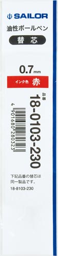 | 商品名 | ボールペン替芯0103 0.7mm 赤 |