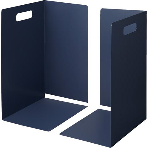 オフィスでよく使われるA3サイズの書類ぴったりのブックエンド!タテ型ファイル、ヨコ型ファイルにコレ1台で対応します。背面があるので、後ろにファイルが落ちにくい!持ち手がついて運びやすくなりました!●サイズ/A3●カラー/ネイビー●寸法/片側:幅210×奥行297×高さ420mm●板厚/1.4mm●材質/本体:スチール、すべり止め:シリコン●すべり止め機能/8ヵ所貼付●すべり止め/8カ所貼付●単位/1組(2枚入)