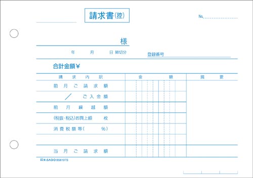 | 商品名 | 合計請求書ヨコ2枚複写(単独税率記載) インボイス |