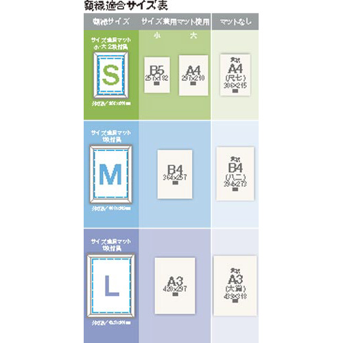 ※サイズ兼用マットや取扱説明書は捨てずに額縁の中に収納して保管してください。※額縁はタテ・ヨコ書きどちらにもご使用できます。※落下による危険が生じる場合がございます。壁掛けには十分ご注意ください。