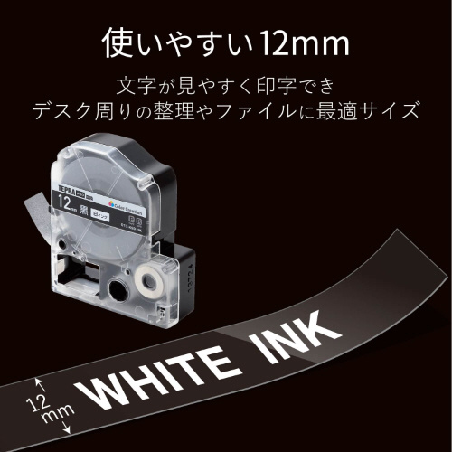テプラPRO互換テープ 黒 12mm 白文字