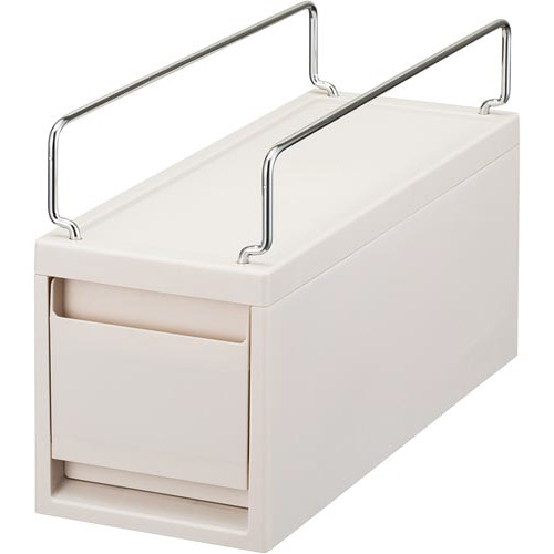 ビジネスバッグを床に直接置くことに抵抗がある方に最適なアイテムです。上部にはビジネスバッグ、下段には電子機器や文具、ブランケットなど小物収納に最適な引出しもついている非常に便利な点がポイントです。●種別/鞄が置ける引出ケース●カラー/カプチーノ●外寸法/幅170×奥行450×高さ280mm●材質/PP●質量/1.57kg●耐荷重/5kg●単位/1個