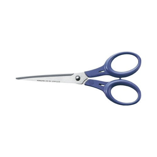 使う人の手にフィットする優しいデザインのハサミ。●種別/リングサイズ標準:35mm●カラー/青●材質/刃部:ステンレス、ハンドル部:再生ABS樹脂、廃棄時、刃部とハンドル部が分離可能●寸法/全長165×幅71mm●刃渡り/75mm●単位/1本