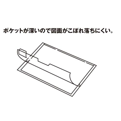 保管・分類・持ち出し時など様々な用途別にご用意。Bタイプは、ポケットが深いので図面がこぼれ落ちにくい!インデックスラベル付。●仕様/Bタイプ●サイズ/A1●カラー/透明●寸法/タテ611×ヨコ864mm●厚さ/0.2mm●材質/再生PP●収容枚数/トレーシングペーパー:約85-100枚、青焼き:約60枚●付属品/インデックスラベル付●単位/1枚