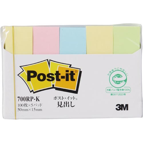 | 商品名 | ポストイット 再生紙見出し 50×15 混色 5冊 |