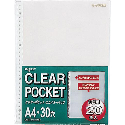 | 商品名 | クリヤーポケット A4縦 30穴 中紙なし 20枚 |