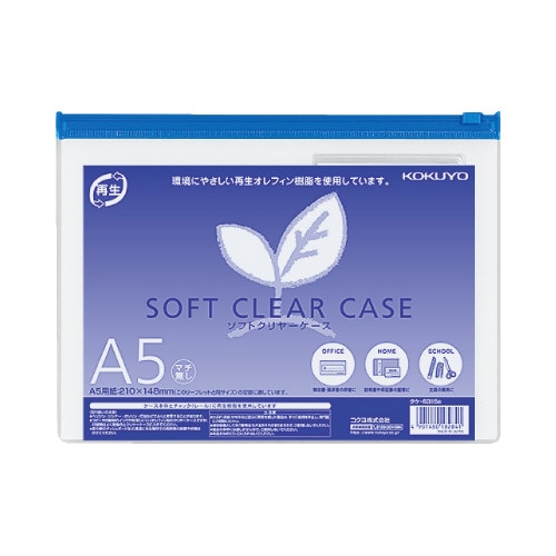 チェック付きなので書類の抜け落ちや紛失を防ぐ。ソフト(軟質)タイプのコクヨクリヤーケース。●サイズ/A5●種別/軟質タイプ●外寸法/180×240mm●内寸法/165×230mm●材質/本体:再生オレフィン樹脂、チャック:再生PP●厚さ/0.3mm●見出しポケット有無/見出しポケット付(ケース内側)見出し紙(27.5×76.0mm)●単位/1枚