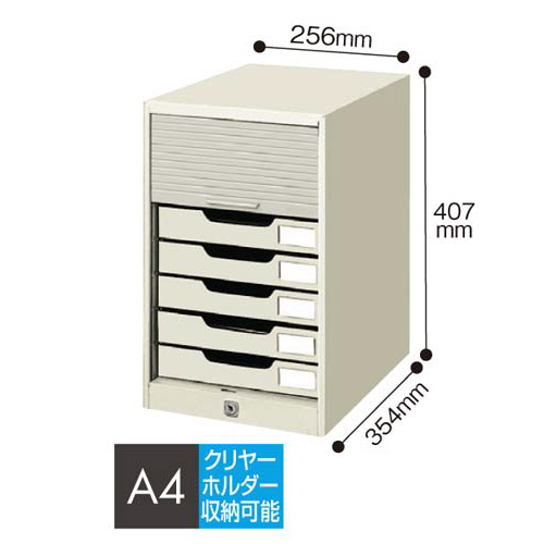 シャッターを閉めて手軽にまとめて施錠管理できる上部なスチール引き出しタイプ。背面にワイヤーを通せる穴が付いているので、本体の盗難対策もバッチリ。●サイズ/A4●種別/錠付・7段●カラー/ライトグレー●外寸法/幅256×奥行354×高さ407mm●引出内寸法/幅232×奥行327×高さ41mm●材質/本体・引き出し:スチール(焼付塗装仕上げ)、シャッター:ABS●最大積み重ね段数/積み重ね不可●機能/背面にワイヤーを通せる穴(直径7mm)付●付属品/鍵2個●ワイヤー穴寸法/直径7mm(背面に2穴)●引き出し数/7段●仕様/A4クリヤーホルダー収納可能●単位/1個