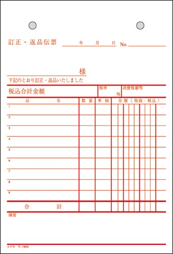 | 商品名 | 3枚訂正返品伝票 B6タテ バックカーボン 10冊 |