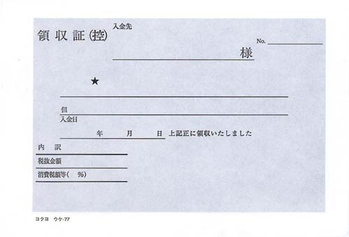 | 商品名 | 複写領収証A6ヨコ型 二色刷バックカーボン 10冊 |