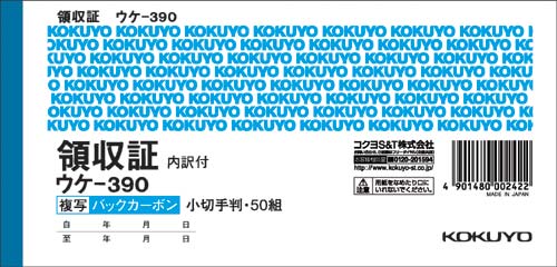 | 商品名 | 複写領収証小切手判ヨコスポットバックカーボン10冊 |