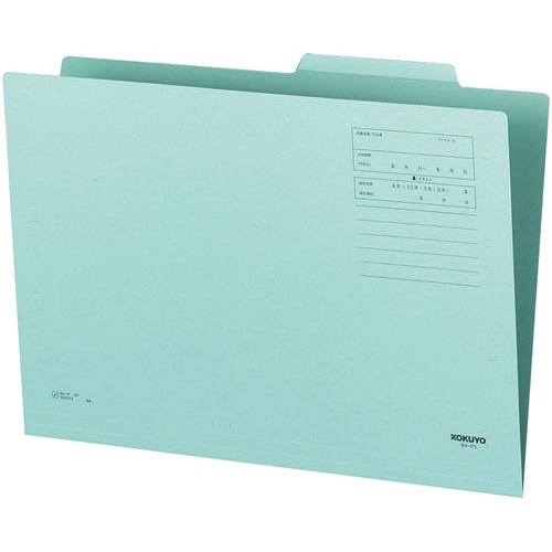 大きめ書類の分類・整理に。B4サイズの個別フォルダー。●サイズ/B4ヨコ●カラー/青●寸法(幅×高さmm)/378×272●山高さ/(+15mm)●材質/色板紙(古紙パルプ配合)●坪量/350g/平方メートル●機能/ファスナー用スリット:1面あたり4ヵ所●単位/1パック(10枚入)