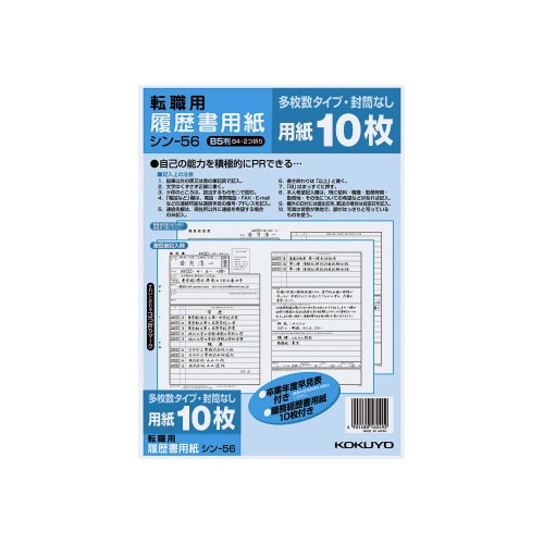 | 商品名 | 履歴書用紙(多枚数)転職用 B5 シン-56 |