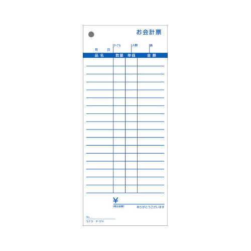 | 商品名 | お会計票・徳用タイプ テ-374N 5冊入 |
