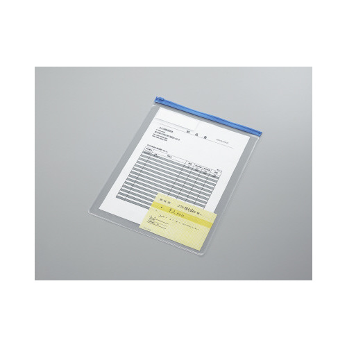 収容書類などの抜け落ち、紛失を防ぐチャック式タイプ。縦型のカードケースです。●サイズ/A4●種別/軟質タイプ●カラー/青●外寸法/335×245mm●内寸法/270×212mm●マチ/マチなし●材質/PVC-P●厚さ/0.3mm●単位/1枚