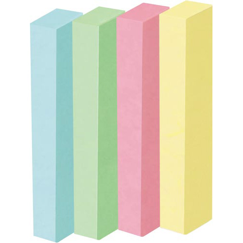 コクヨの定番!貼ってはがせるメモ。●寸法/50×7.2mm●カラー/4色ミックス●枚数/1冊あたり100枚●材質/紙(古紙配合)●タイプ/ミニサイズ・スリム●粘着部分/7.2mm側●1冊/100枚入×10本入り●単位/1パック(10冊入)