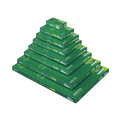 透明度が高く、加工物を美しく見せると同時にしっかり保護します。加工物をスムーズにフィルムに挟むことができ、作業を効率化します。再生PET素材を使用。●サイズ/A5サイズ用●フィルム寸法/158×220mm●厚さ/100μm●材質/再生PET●単位/1箱(100枚入)