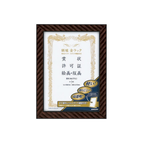 | 商品名 | 額縁金ラック軽量タイプスタンド付賞状A4尺七サイズ |