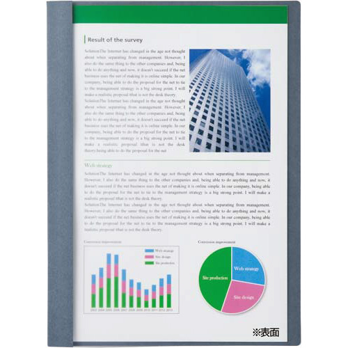 操作も構造もシンプルなコクヨ独自のループ構造とじ具を採用。閲覧製に優れ、とじたまま筆記やコピーがしやすい設計になっています。●サイズ/A4タテ●カラー/緑●収容枚数/約100枚●寸法(タテ×ヨコmm)/305×227●材質/オモテ表紙:PP、裏表紙:再生PP●シート厚/表:0.2mm、裏:0.5mm●背幅/5-17mm●とじ幅/10mm●背紙種別/替背紙式●機能/背見出し紙は抜き差し可能●穴数/2穴(80mmピッチ)●単位/1冊