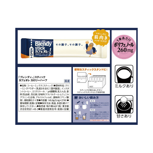 | 商品名 | ブレンディスティックカフェオレカロリーハーフ24本※ |