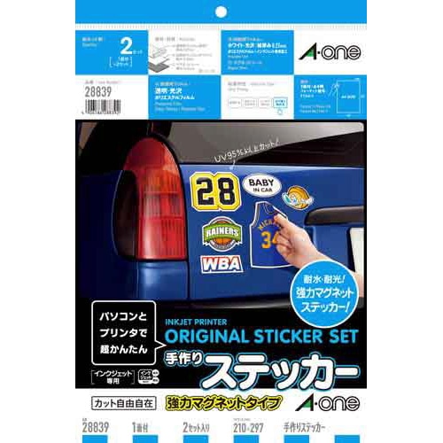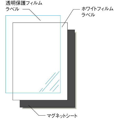 インクジェットプリンタで印刷できる、自作マグネットシートです。白フィルムラベルに印刷後付属のマグネットシートに貼り合わせます。透明保護フィルム付きだから傷つきにくい。耐水性・耐光性に優れています。●サイズ/A4●紙厚/総厚:150μm(ラベル本体:100μm)、マグネット本体:600μm●対応プリンタ/インクジェット(染料・顔料)●仕様/マグネットタイプ ホワイトフィルムラベル+透明保護フィルムラベル+マグネットシート●カット数/ノーカット●カット数/ノーカット●一片の大きさ/210×297mm●単位/1セット(2枚入×5)