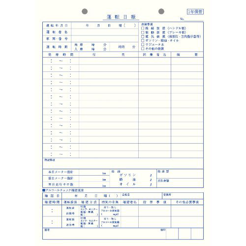 | 商品名 | 社内用紙 運転日報 B5 2穴 100枚 5冊 |