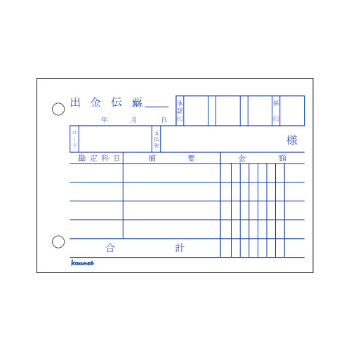 | 商品名 | カウネット出金伝票 B7ヨコ 100枚 5冊入 |