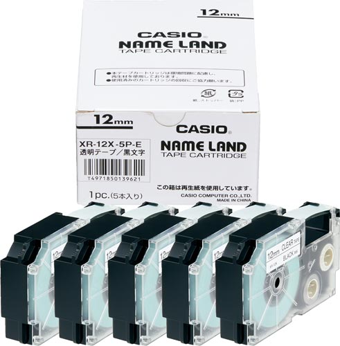 | 商品名 | ネームランド 透明テープ 12mm 黒文字 5個入 |