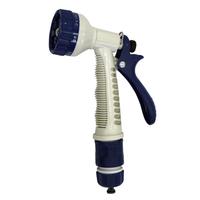ベランダやお庭での散水、清掃。車等の洗浄。●材質/樹脂・ステンレス●サイズ/210×135×50mm●適合ホース/耐圧(糸入り)内径12から15mm・外径20mmまで●水流7パターン/溢水・ヨコ・ジェット・ミスト・シャワー(大)・ジョウロ・シャワー(小)●色/PANTON 540C・COOL GRAY●重量/0.15kg●原産国/台湾●備考/7パターンノズル。ノズルを外しても水が噴き出ないストップコネクター付き。●単位/1個