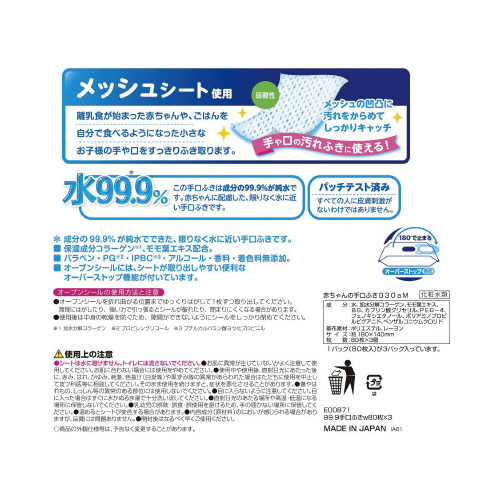 | 商品名 | 水99.9% 手口ふきW 80枚入×3個パック |