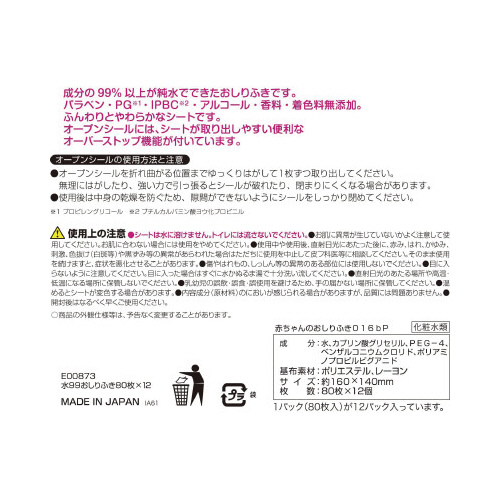 ※【返品に関するご注意】開封後はお客様のご都合による返品はお受けできません。※1箱単位でご注文下さい。※シートは水に溶けません。※トイレには流さないで下さい。※使用中や使用後、直射日光にあたった後に、赤み、はれ、かゆみ、刺激、色抜け(白斑等)や黒ずみ等の異常があらわれた場合はただちに使用を中止して皮フ科医等に相談して下さい。※そのまま使用を続けますと、症状を悪化させることがあります。※傷やはれもの、しっしん等の異常がある部位には使用しないで下さい。※直射日光のあたる場所や高温・低温になる場所に保管しないで下さい。※乳幼児の誤飲・誤食・誤使用を避けるため、手の届かない場所に保管してください。※開封後はなるべく早くご使用ください。