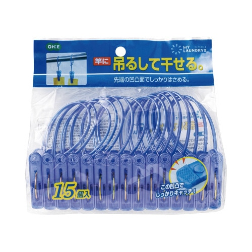 ひも付きなので竿に吊り下げて使用でき、靴下などの小物干しにも便利です。●寸法/幅180mm×奥行35mm×高さ190mm●材質/ポリプロピレン、ポリエチレン、鋼●単位/1パック(15個入)