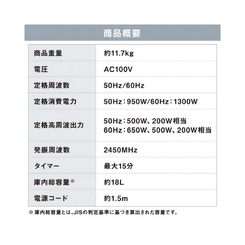 | 商品名 | 単機能レンジ 18L フラットタイプ |