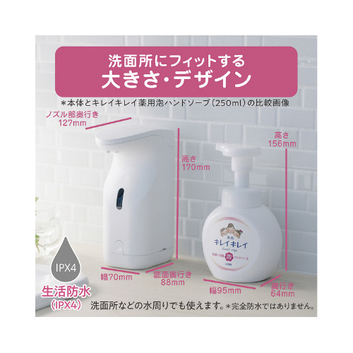 ※詰替はキレイキレイ薬用泡ハンドソープをお使いください。※他社製品や液体タイプなどをご使用になると故障の原因になります。※水中で使用したり、故意に水をかけたり、湿度の高い場所での使用は避けてください。※センサー部を直接濡らしたりハンドソープがかからないようにしてください。センサーが反応しなくなる恐れがあります。※湿疹・皮ふ炎(かぶれ、ただれ)等の皮ふ障害があるときには、悪化させる恐れがあるので使わないでください。※メーカーの都合によりパッケージが予告なく変更される場合があります。※【返品に関するご注意】開封後はお客様のご都合による返品はお受けできません。