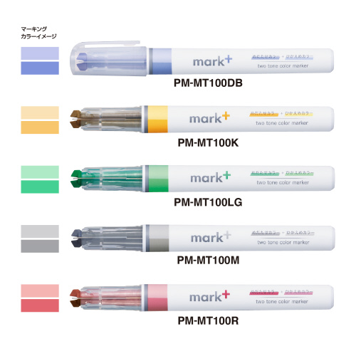 同系色の「めだたせカラー」と「ひかえめカラー」で、ノートがスッキリまとまる「1本で2色」のマーキングペン●ペン先/特殊角芯●インク色/グレー●インク種類/水性顔料インク●材質/軸・キャップ:PP、内尾栓:R-PP●寸法/軸径15mm×長さ131mm●単位/1本