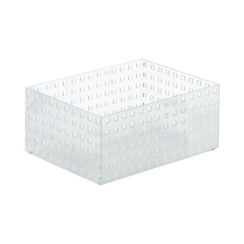 テーパーレス設計なので、横に並べても隙間無く置けます!裏面にはスベリ止めの足ゴム付き!●寸法/奥行280×幅210×高さ125mm●内寸法/奥行273×幅202×高さ118mm●材質/ABS樹脂●カラー/クリア●対応仕切り板メーカー品番/9103●単位/1セット●単位/1セット(5個組)