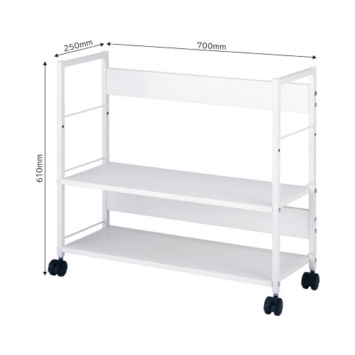 デスク下に格納できるワイドタイプのA4タテが収納できるワゴン。●種別/アンダーデスクワゴンA4縦型●カラー/ホワイト●外寸法/幅700×奥行250×高さ610mm●天板厚さ/15mm●棚板寸法/幅668×奥行250×厚さ15mm●内寸法/幅668×奥行232×高さ(棚板上設置時)上段179mm、下段335mm(棚板下設置時)上段338mm、下段176mm●材質/フレーム:スチール(粉体塗装)、棚板:メラミン化粧板(MDF)、キャスター:PP●質量/6.25kg●耐荷重/棚1段あたり:約10kg●棚板枚数/可動棚板:1枚(159mmピッチ)●機能/キャスターストッパー機能(2個)●付属工具/スパナ●生産国/中国●単位/1台