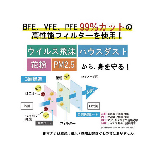 ※マスクは感染(侵入)を完全に防ぐものではありません。※商品の仕様は予告なく変更することがあります。※【返品に関するご注意】開封後はお客様のご都合による返品はお受けできません。