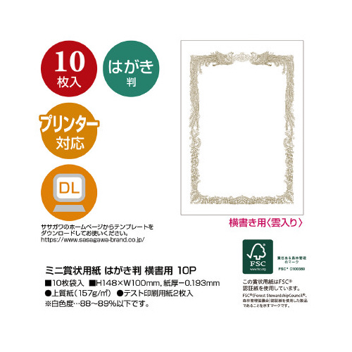 | 商品名 | ミニ賞状用紙 はがき判 横書用 10P |