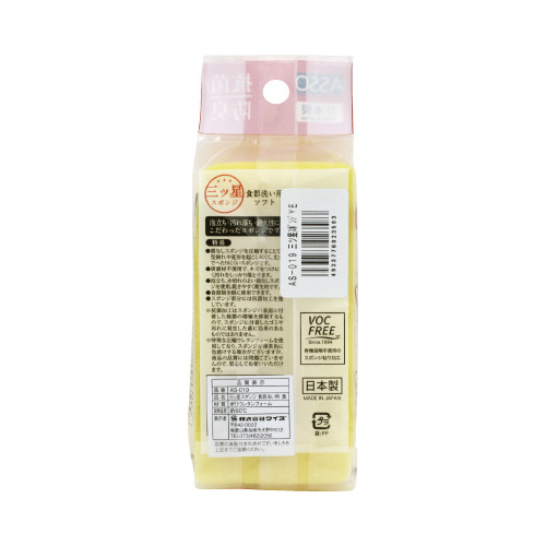 | 商品名 | 三ツ星スポンジ 食器洗い用 黄 2個組×10 |