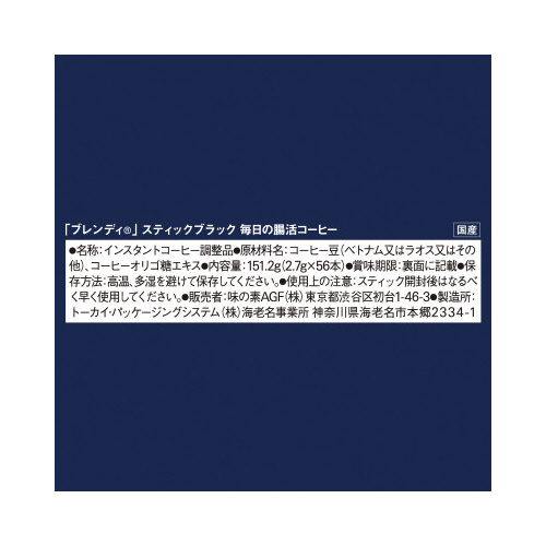 | 商品名 | ブレンディ スティックブラック 腸活コーヒー56本※ |