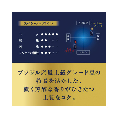 ブラジル産最上級グレード豆#2の特徴を活かした、濃く芳醇な香りがひきたつ上質なコクをお楽しみいただけます。●種別/スペシャル・ブレンド●内容量/250g●賞味期限/商品の発送時点で、賞味期限まで残り130日以上の商品をお届けします。●単位/1袋(250g入)