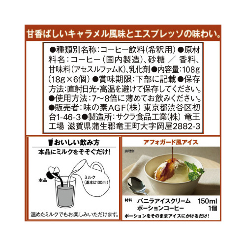商品名 濃縮コーヒー キャラメルオレベース6個×3※