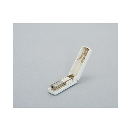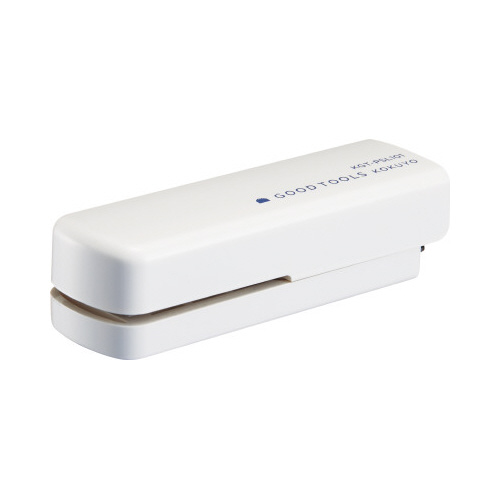 「これが良い」が、ここにある。GOOD TOOLSシリーズのポータブルステープラー●カラー/ホワイト●寸法/幅21×長さ68×高さ17mm(たたんだ時)●とじ奥行/最大26mm●針装填方式/ワンタッチオープン方式●装填数/50本●使用針/10号針●とじ枚数/約10枚●材質/カバー:ABS、スライダー:POM、その他:スチール●単位/1個