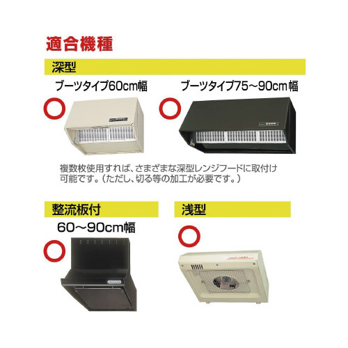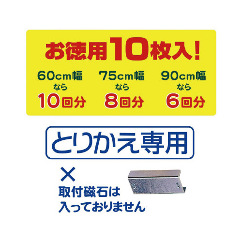 ※この製品は、とりかえ専用フィルターですので、初めて使用する方は、60cmに切れてるふんわりフィルター取付磁石付き、または当社の専用取付磁石をお買い求めください。フィルターを固定するときは、専用取付磁石でしっかりとつけてください。長時間使用される業務用等ではご使用しないでください。※レンジフードの形状により取付けできない機種があります。無理に取付けた場合、安全性またはレンジフード本来の性能を著しく損なう恐れがありますので、パッケージ記載事項をよく読んでからお使いください。