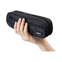 面ファスナーで留められた仕切りを動かすことで内部の仕切り方を2ウェイに。小物スペースを大きくとれ、ペンと分けて収納できる。仕切りを外せばスペースが広がり、横面に移動した仕切りに消しゴムなどが入る。●カラー/グリーンカモフラージュ●寸法/縦75×横240×厚さ45mm●材質/本体:ポリエステル●収容本数/ペン約15本●ポケット/鉛筆や20cm定規も入る外側ファスナー付きポケット●仕様/ダブルファスナー●単位/1個