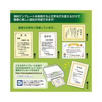オリジナル賞状を作成するのに最適な手作リ賞状作成用紙です。●サイズ/縦364mm×横257mm●紙厚/0.193mm●紙質/上質紙(157g/平方メートル)●対応機種/インクジェット、レーザー●カラー/白●付属品/テスト印刷用紙2枚入×5パック●入数/10枚入×5パック●単位/1セット(1冊10枚×5パック)