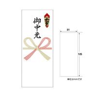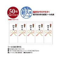 貼り付けの簡単なシールタイプの札紙(ふだがみ)で、デザインは「花結び水引きのし有り御中元」です。シールタイプですので糊付けが不要で作業の効率が良いです。●サイズ/シート:縦140mm×横270mm●寸法/一片:縦125mm×横51mm●材質/コートタック紙(弱粘着)●包装形態/1冊50片セット入(5片×10シート)●入数/50片入×5パック●単位/1セット(1冊50片入×5パッ