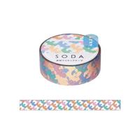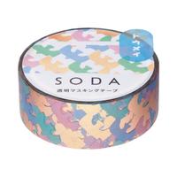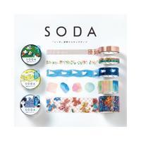 「SODA」は貼ってはがせる透明フィルム素材のマスキングテープ。曲面にも貼りやすく、手帳やラッピングなどの幅広いデコレーションに。下地の色を活かして貼ったり、複数枚を重ねて貼っても楽しめます。●サイズ:幅15mm×4m●素材:PET●単位/3本●単位/3巻