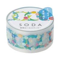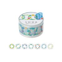 「SODA」は貼ってはがせる透明フィルム素材のマスキングテープ。曲面にも貼りやすく、手帳やラッピングなどの幅広いデコレーションに。下地の色を活かして貼ったり、複数枚を重ねて貼っても楽しめます。●幅20mm×90ピース●素材:PET●単位/3本●単位/3巻